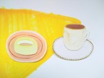 純喫茶のデザートメニュー、ババロアをイメージして描いた一点もののブローチです。